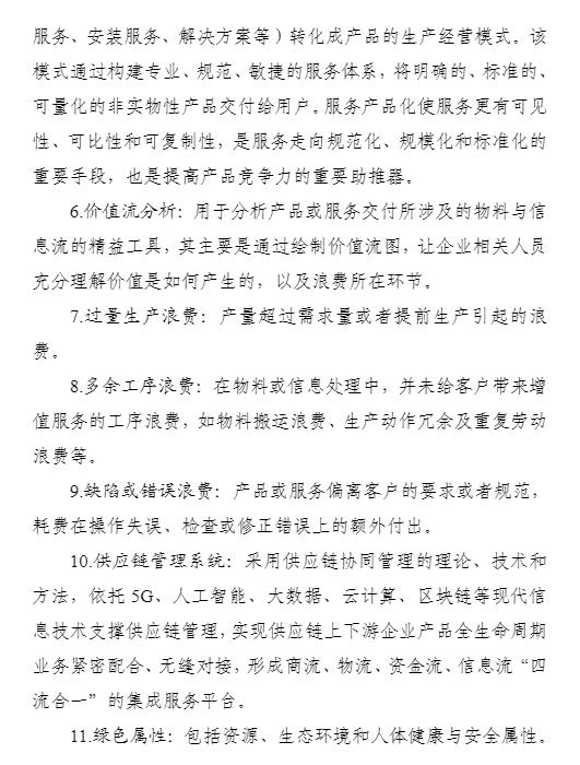 (五)消除供应链各环节浪费。企业可灵活运用成本总量核算、价值流分析等方式,精准识别供应链全过程中的过量生产浪费、多余工序(物料搬运距离、生产动作冗余、重复劳动等)浪费、缺陷或错误浪费、库存浪费等内容,及时分析查找原因,采取必要的监测预警手段,实施提高周转速度、减少流程差异等改进方法来消除浪费,实现资源的最优配置。