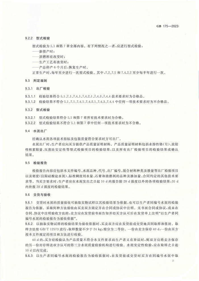 《通用硅酸盐水泥》新标准自2024年6月1日起实施