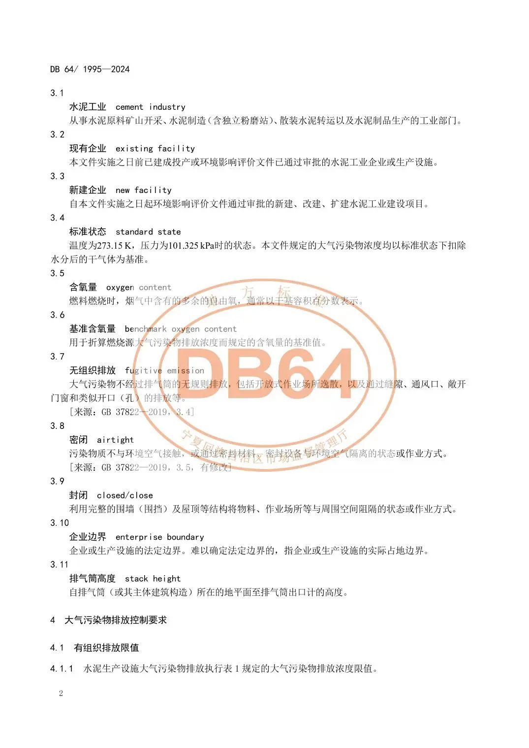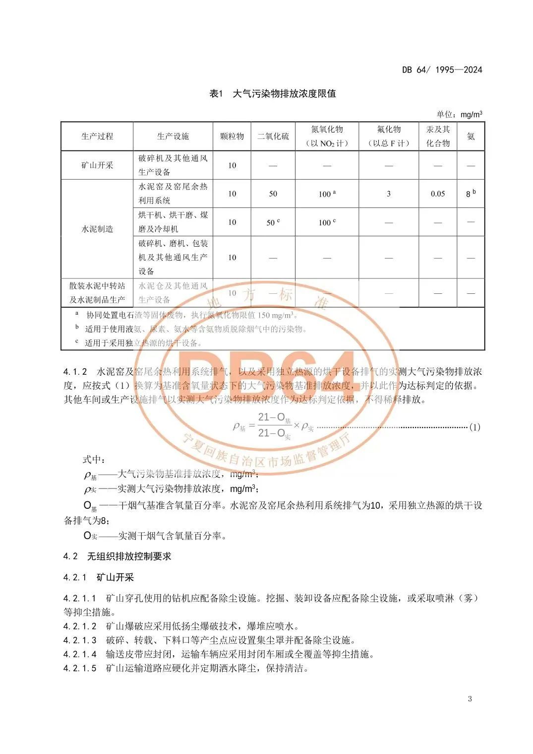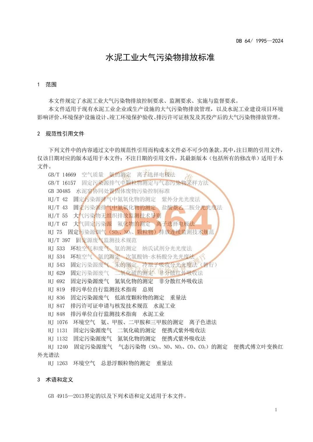宁夏回族自治区生态环境厅近日发布地方标准《水泥工业大气污染物排放标准》,自5月4日起施行。