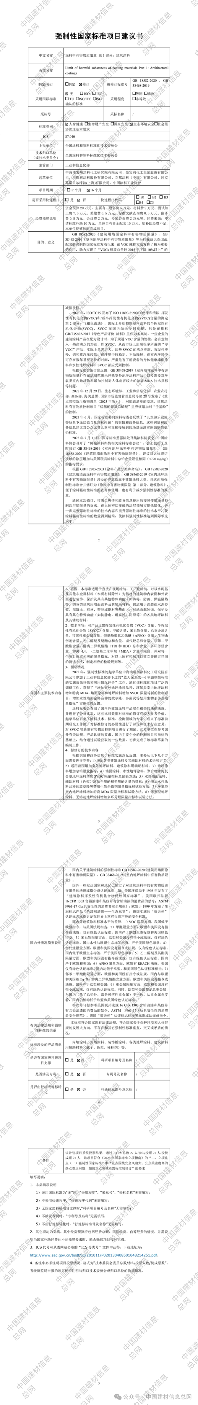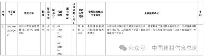 4月8日,工信部发布通知公开征集对《涂料中有害物质限量 第1部分:建筑涂料》强制性国家标准制修订计划项目的意见。